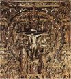 con gran detallismo de brocados y el grandioso retablo de esquema geométrico