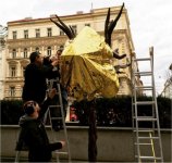 14-16. Ai Weiwei en Praga con sus Cabezas del Zodiaco cubiertas