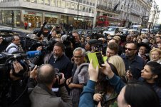 6. Ai Weiwei y Anish Kapoor al término de la marcha por los refugiados,