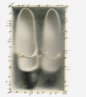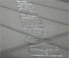 nombres escritos sobre planchas de vidrio, que fueron delineados y cortados