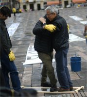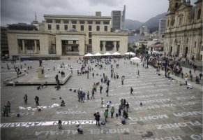 en el suelo de la Plaza de Bolívar, en centro histórico