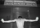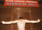ciclo FE. Luizo Vega, completamente desnudo, rez frente a la Iglesia