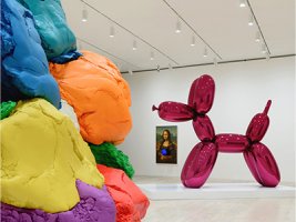 La imagen de la inquietud artística de Duchamp se utiliza para acercarse a las contribuciones de Jeff Koons en forma simplista, objetual, acomodada bajo la perspectiva mercantil de visión kitsch que reafirma el fenómeno del embellecimiento del producto comercial popular que Koons realiza. La obra de Duchamp está cargada de una crítica a la mercancía, los objetos, y la relación del artista con la sociedad con mordaces asaltos perpetrados desde una formada percepción y conocimiento de la representación. El desapego y alejamiento que Duchamp propicia con su afirmación “la belleza de la indiferencia”, que emerge a través de sus piezas entrelazadas con la fuerza del lenguaje y la reflexión conceptual, se transforma con Koons en el mero anonimato del producto industrial. Sin embargo, hay que valorar en la obra de Koons la contribución a la disciplina de la escultura acoplando el Pop, el Minimalismo y el ready-made en un modo refrescante reelaborando la disciplina con diferentes materiales y técnicas.