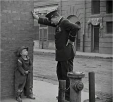 Mientras Charlot lucha para recuperarlo. Se trata de una de las escenas