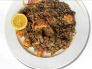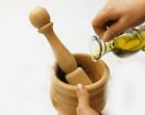 - En un mortero se machaca un cabeza de ajo y una patata cocida, se incorpora una yema de huevo hasta conseguir una crema, se sigue batiendo echando aceite (unos 100 ml.) gota a gota hasta conseguir como una mahonesa, se sirve en un pequeño mortero junto al arroz.