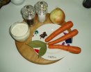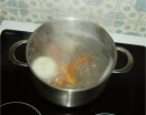 en un litro y medio de agua las zanahorias y la cebolla a la que le