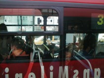 está la ruta del Transmilenio. Cruzo. Me siento en la pequeña